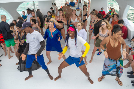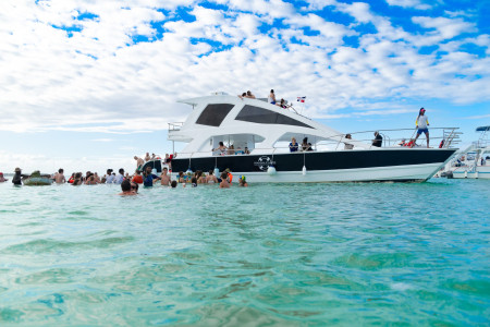 Vive la experiencia de navegar sobre la bahía de Punta Cana a bordo de un catamarán. Haz una parada y sumérgete en el mar caribe para hacer snorkel y conoce la vida marina de la zona. Además, disfruta de la piscina natural mientras puedes tomar Ron dominicano de nuestro bar en el agua. Regresa al muelle bailando y gozando con nuestro equipo de animación a bordo.